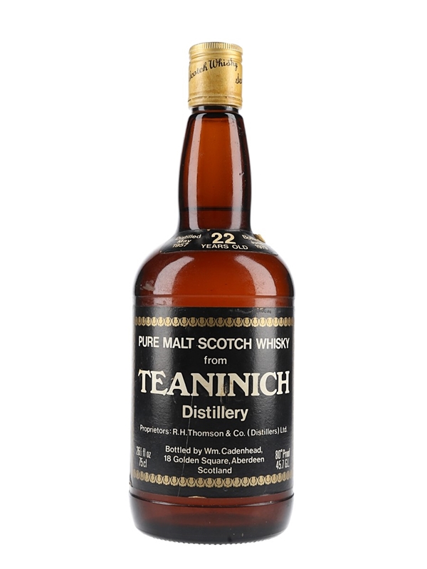 A bottle of Teaninich 22 Year Old Pure Malt Scotch Whisky from independent bottler Cadenhead. This was distilled in May 1957, matured for 22 years and bottled in June 1979.