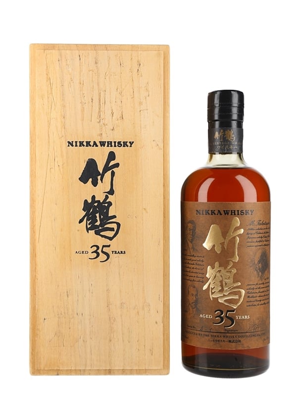 A bottle of Nikka Taketsuru 35 Year Old Japanese Whisky produced by the Nikka Whisky Distilling Co.Ltd., Japan.
