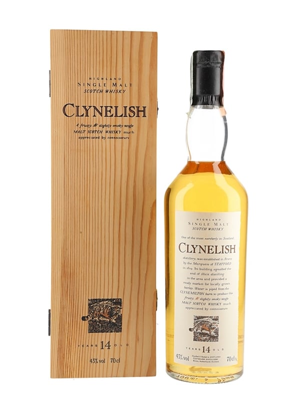 A bottle of Clynelish 14 Year Old Highland Single Malt Scotch Whisky from Diageo's Flora & Fauna series. This proved to be very popular and led to Diageo producing a 14 year old Clynelish as the distillery's standard bottling. This was imported to the Italian market by Taverna Degli Artisti.