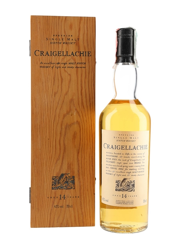 A bottle of Craigellachie 14 Year Old Single Malt Scotch Whisky, released as part of Diageo's Flora & Fauna series. This was imported to the Italian market by Rossi & Rossi.