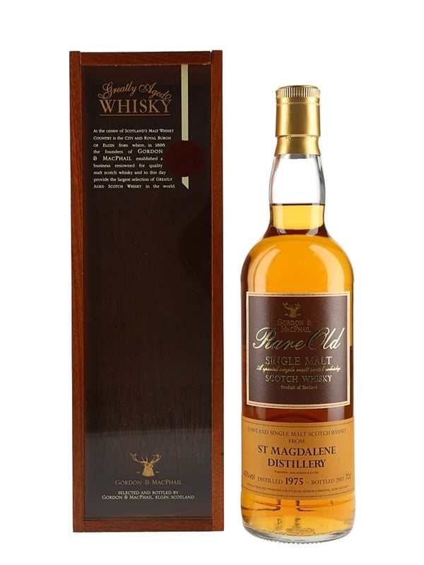 A bottle of St Magdalene 1975 Lowland Single Malt Scotch Whisky. This was distilled in 1975 and bottled in 2007 by Gordon & MacPhail as part of the Rare Old series.