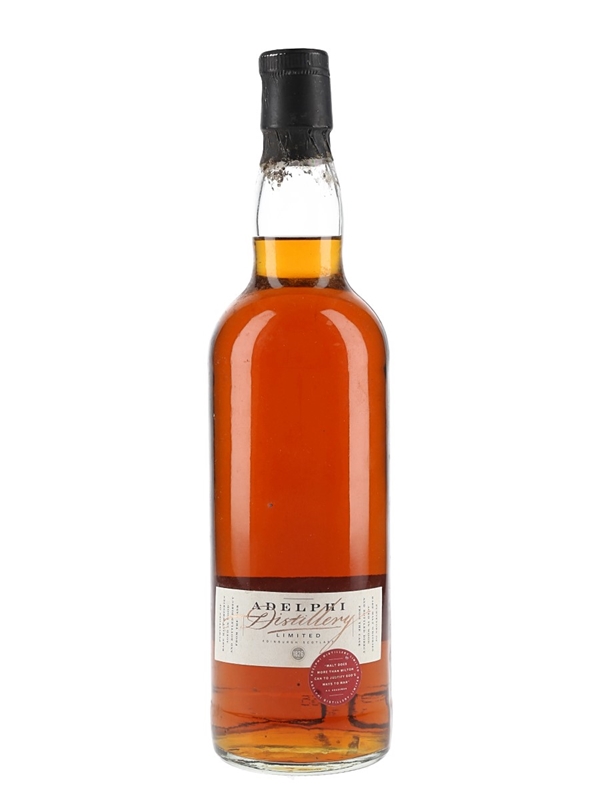 A bottle of Knockdhu 14 Year Old Single Malt Scotch Whisky. This was distilled in 1978, matured in a single cask and bottled at 51.8% ABV in 1993 by Adelphi Distillery Limited.