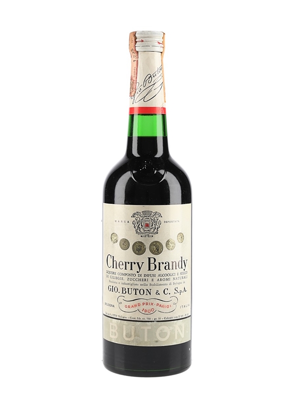 A bottle of Buton Cherry Brandy, winner of the Grand Prix in Paris in 1900. We estimate this was bottled in the 1960s.