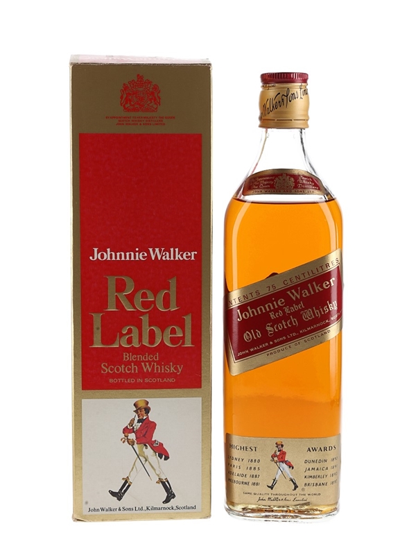 A bottle of Johnnie Walker Red Label Old Scotch Whisky, the world's best selling Scotch whisky. This was bottled for the Bahrain International Airport, we estimate in the 1980s.