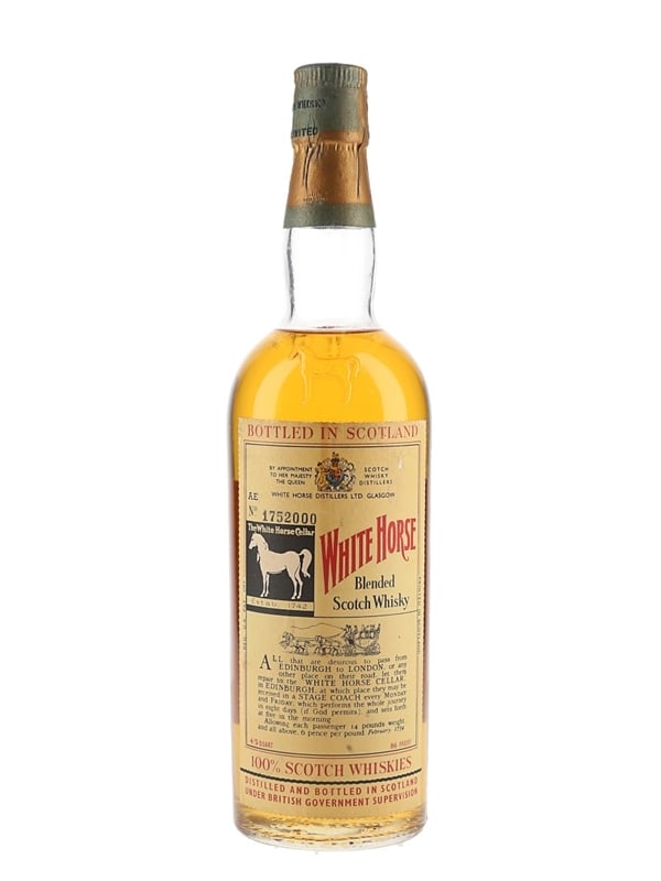 A bottle of White Horse Blended Scotch Whisky. This was bottled for the US market at 43% ABV, we estimate in the 1960s.