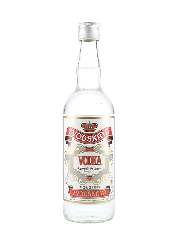 A bottle of Zvodskaya Vodka produced in France. We estimate this was bottled in the 1990s.