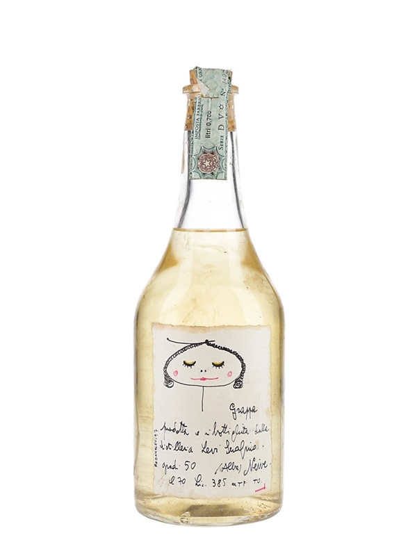 A bottle of Romano Levi Grappa, produced at Distilleria Levi Serafino and bottled in 1997.