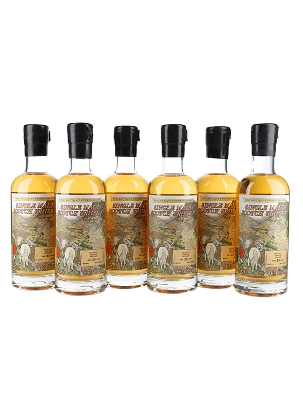 This lot contains six bottles of Glen Elgin 25 Year Old Batch 1 Single Malt Scotch Whisky, bottled by That Boutique-y Whisky Company at 48.1% ABV.