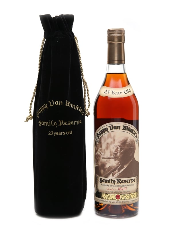 A bottle of Pappy Van Winkle's 23 Year Old Family Reserve.