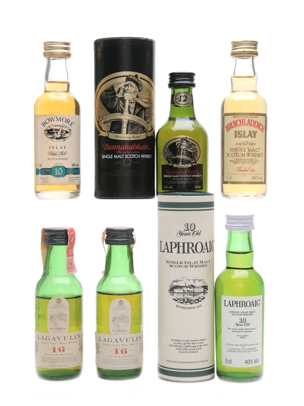 Islay Single Malt Miniatures Lagavulin (White Horse), Bunnahabhain, Bruichladdich, Bowmore, Laphroaig 6 x 5cl