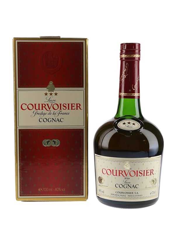 A bottle of Courvoisier 3 Star Luxe Cognac. We estimate this was bottled in the early 1990s