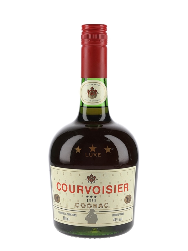 A bottle of Courvoisier 3 Star Luxe Cognac. We estimate this was bottled in the late 1970s to 1980s.