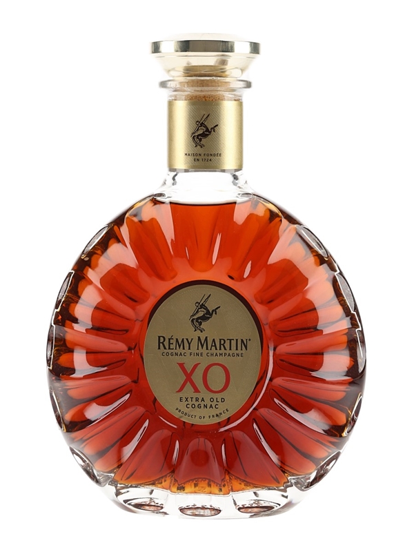 A bottle of Rémy Martin XO Fine Champagne Cognac. The bottling code indicates this was bottled in 2023.