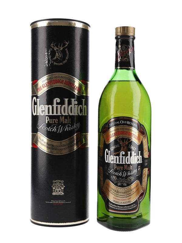 A litre bottle of Glenfiddich Special Old Reserve Pure Malt Scotch Whisky produced by William Grant & Sons Ltd. We estimate this was bottled in the 1990s.