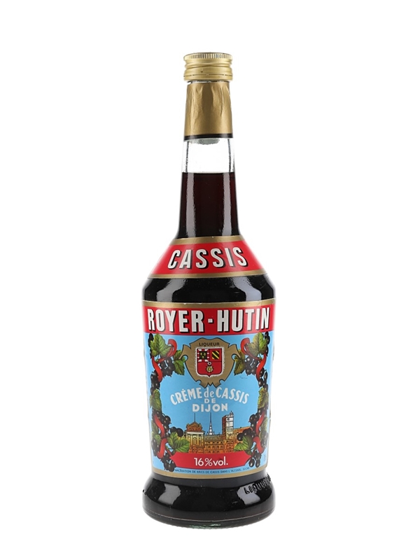 A bottle of Royer Hutin Creme De Cassis from Dijon, France.