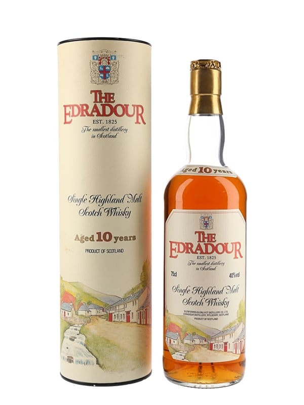 A bottle of Edradour 10 Year Old Single Malt Scotch Whisky. We estimate this was bottled in the 1980s.