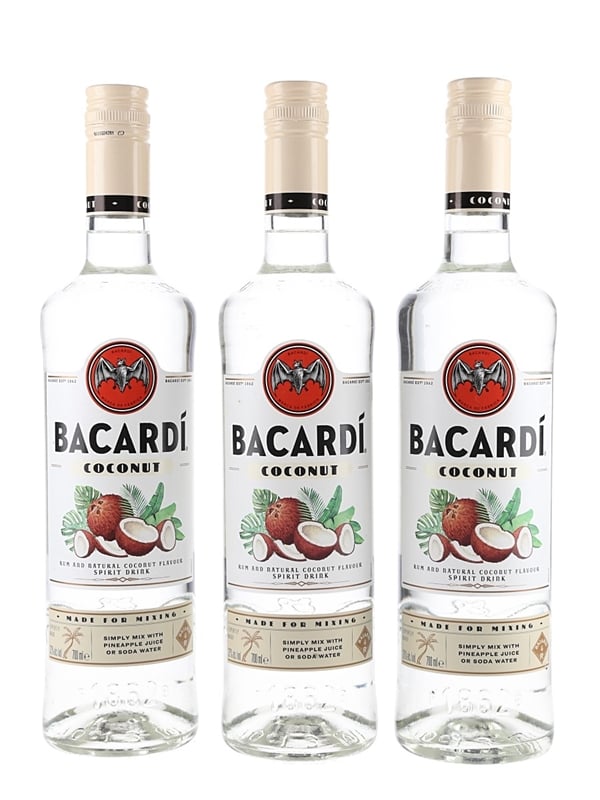 This lot contains three Bacardi Coconut rum.