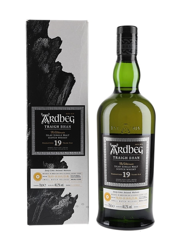 A small batch release of Ardbeg 19 Year Old Traigh Bhan Small Batch Release The Ultimate Single Malt Scotch Whisky, matured in a combination of American oak and oloroso sherry casks and bottled on 14 June 2021 at 46.2% ABV.