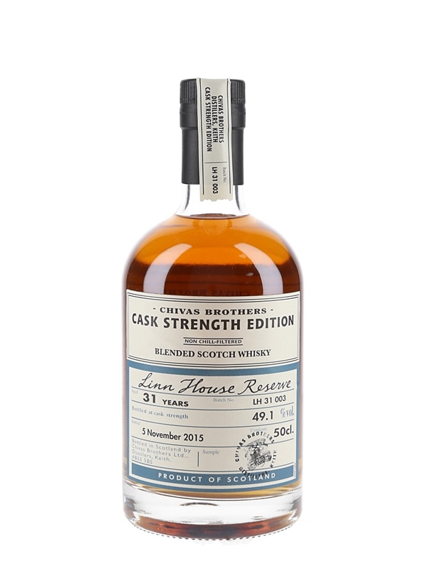 A 50cl bottle of Chivas Brothers 31 Year Old Linn House Reserve Blended Scotch Whisky, part of the Cask Strength Edition series, bottled at 49.1% by Chivas Brothers Ltd.