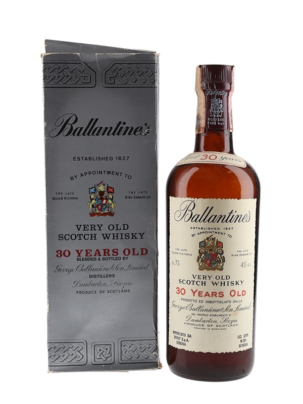 A bottle of Ballantine's 30 Year Old Very Old Scotch Whisky, produced and bottled by George Ballantine & Son Limited. This was bottled for Italian importer Spirit, we estimate in the 1970s.
