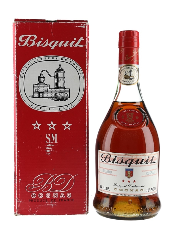 A 68cl bottle of Bisquit 3 Star Cognac. We estimate this was bottled in the 1970s.