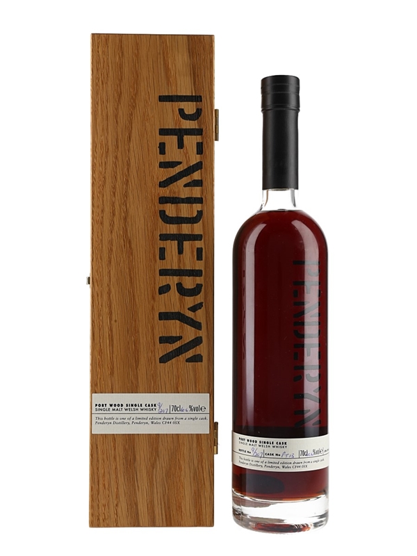 A limited edition bottle of Penderyn Welsh single malt whisky. This was matured in a single port cask and bottled at a cask strength of 60.6% ABV.