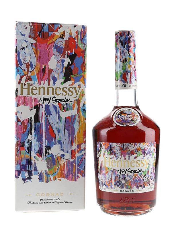 A limited edition bottle of Hennessy Very Special Cognac designed by Dominican Republic street artist JonOne. This is bottle number 075883 of 575000.
