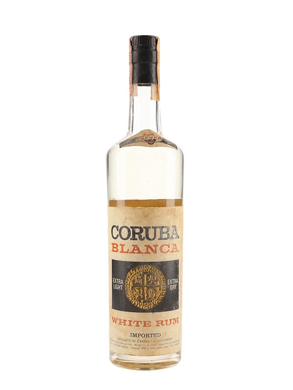 A bottle of Coruba Blanca extra dry and light white rum from Jamaica. This was imported to Italy by Orlandi, we estimate in the 1960s to 1970s.