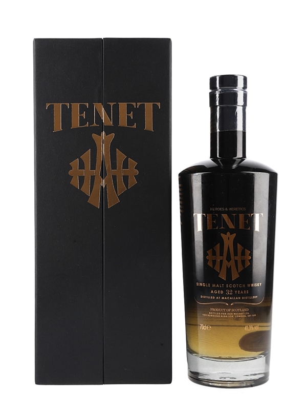 A bottle of Macallan 32 Year Old Single Malt Scotch Whisky. This was distilled at Macallan distillery on 2 May 1989, matured in a single hogshead and bottled on 28 July 2021 by independent bottler Heroes and Heretics as part of their Tenet series.