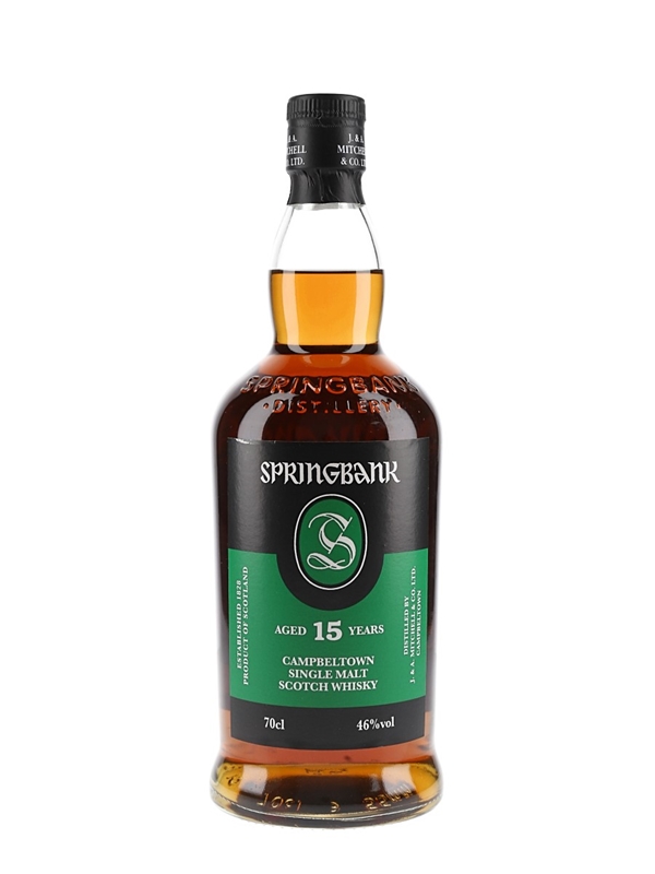 A bottle of Springbank 15 Year Old Campbeltown Single Malt Scotch Whisky distilled by J. & A. Mitchell & Co. Ltd. The bottling code indicates this was bottled in 2023.