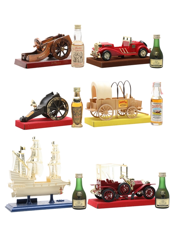 2 x L. Dorville Napoleon Brandy Vintage Car, 3cl, 40%, part of the Mini Set Series Imported to Japan by Kinoshita Shoji. Co;