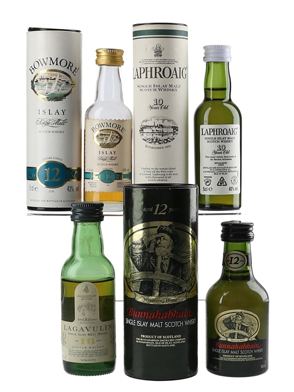 This lot contains four miniature bottles of Islay Single Malt Scotch Whisky. We estimate these were bottled in the 1980s to 1990s.
