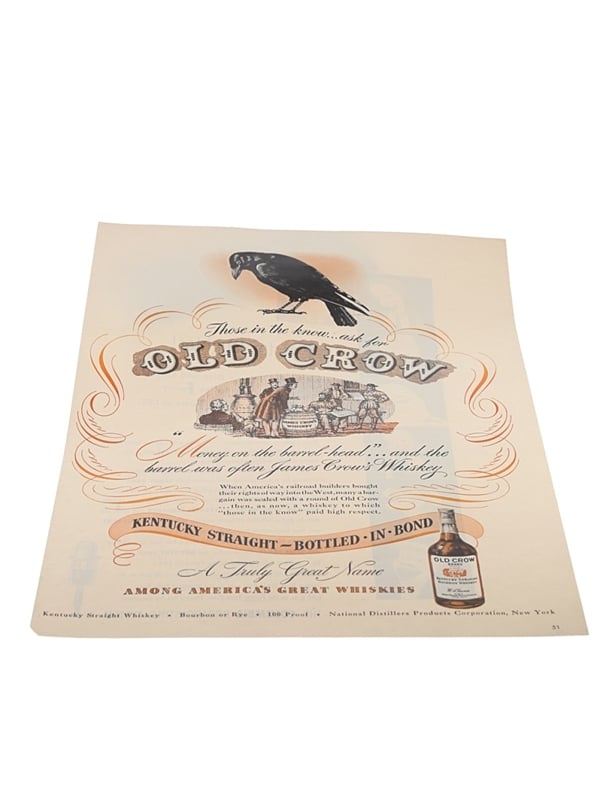 Old Crow Bourbon Advertising Print 1940s - Money On The Barrel-Head 34.5cm x 26cm