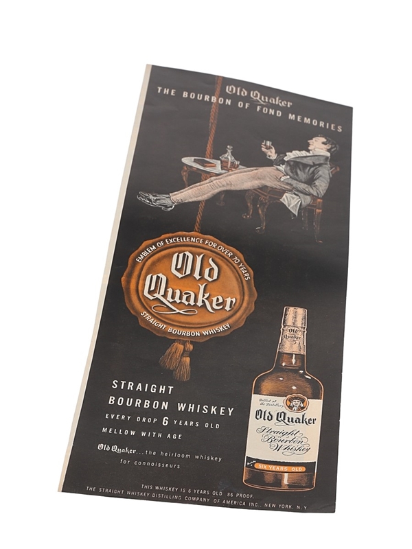 Old Quaker Bourbon Advertising Print 1940s - The Bourbon Of Fond Memories 35.5cm x 14.5cm