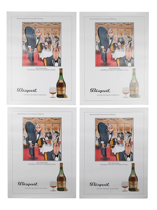 This lot contains four Bisquit Advertisement Prints 'The Diner Who Said That Bisquit Is Just Another Cognac'. Each print measures approximately 51cm x 38.5cm.