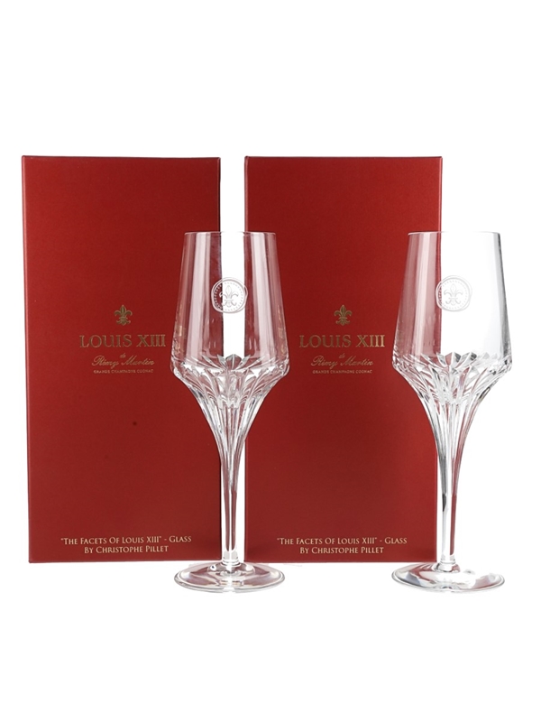 A pair of individually boxed Rémy Martin Louis XIII crystal glasses produced by French designer Christophe Pillet.