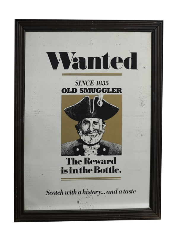 An Old Smuggler Wanted mirror. This measures approximately 51cms by 66cms.