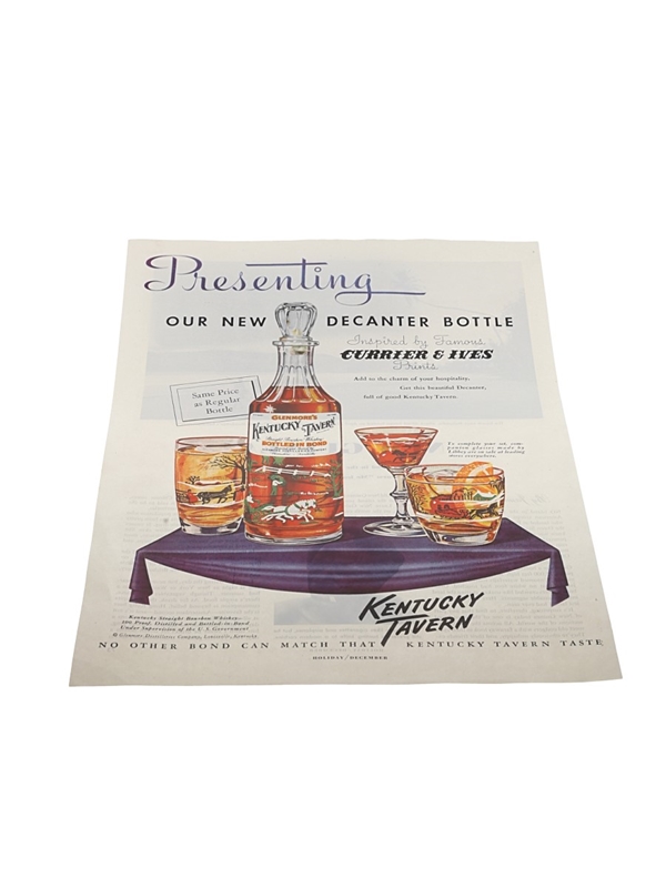 Kentucky Tavern Bourbon Advertising Print 1950s - New Decanter Bottle 26cm x 35cm