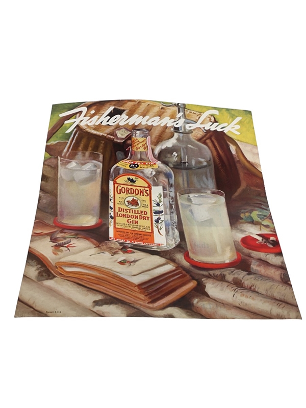 Gordon's Gin Advertising Print 1930s - Fisherman's Luck 28cm x 35cm