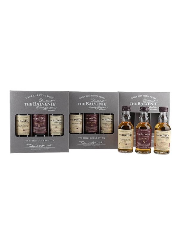 This lot contain three The Balvenie Tasting Collection sets, including Balvenie 12 Year Old Doublewood, Balvenie 14 Year Old Caribbean Cask and Balvenie 17 Year Old Doublewood.