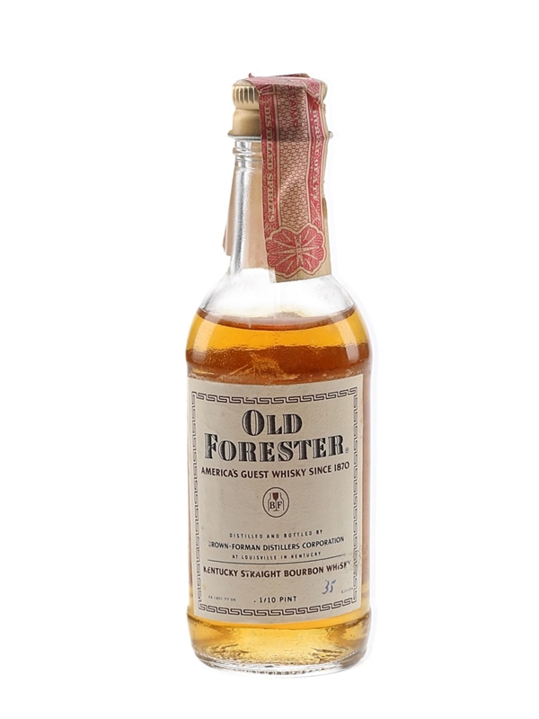 A miniature bottle of Old Forester Kentucky Straight Bourbon Whiskey, produced by Brown-Forman Distillers Corporation. We estimate this was bottled in the 1970s.