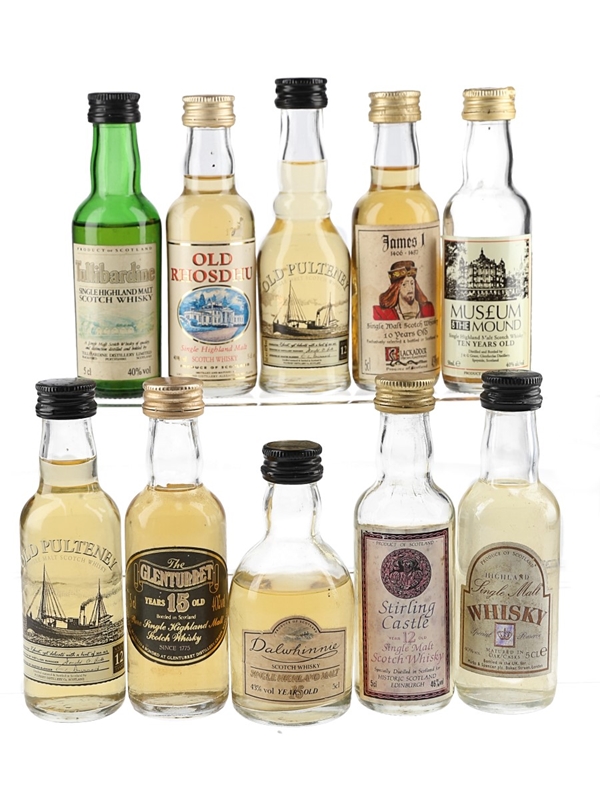This lot contains 10 miniature bottles of Highland Single Malt Scotch Whisky.