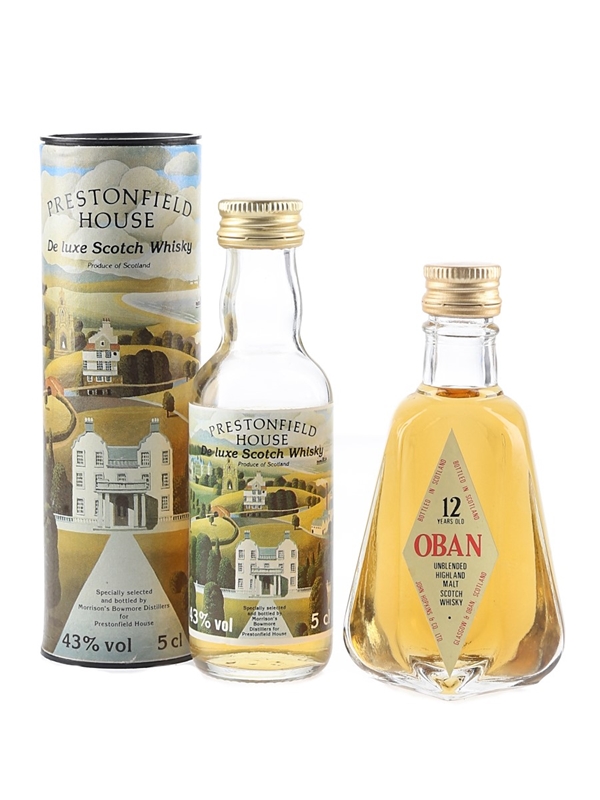 This lot contains two miniature bottles including Bowmore Prestonfield House and Oban 12 Year Old Single Malt Scotch Whisky.