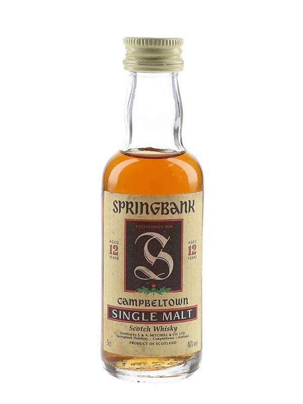 A miniature bottle of Springbank 12 Year Old Campbeltown Malt Scotch Whisky. We estimate this was bottled in the 1980s.