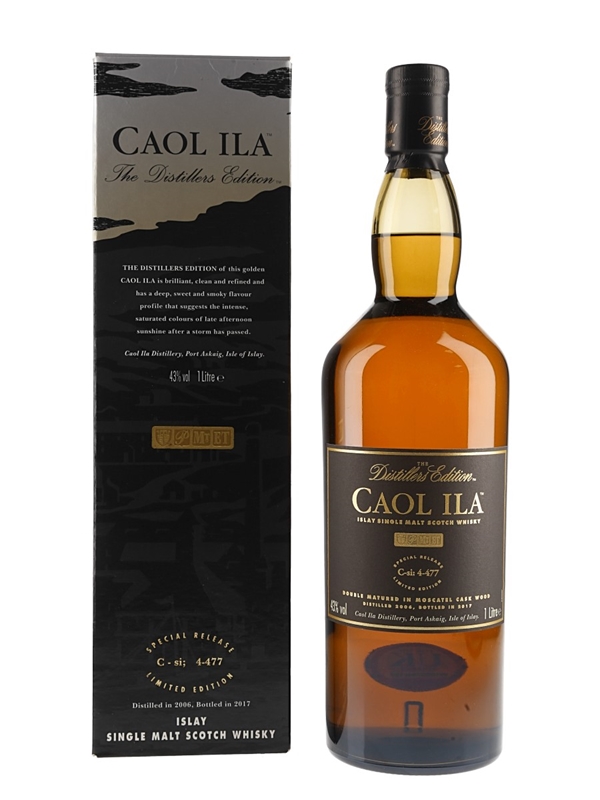 A litre bottle of Caol Ila 2006 Limited Edition Islay Single Malt Scotch Whisky. This was finished in Moscatel casks and bottled in 2017 for The Distillers Edition series.