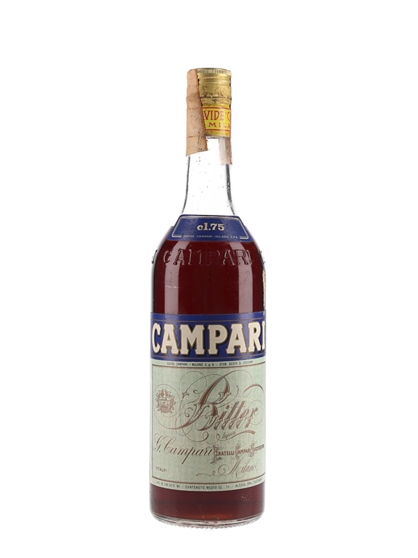 A bottle of Campari Bitter liqueur produced in Milan by Davide Campari, we estimate in the 1970s.