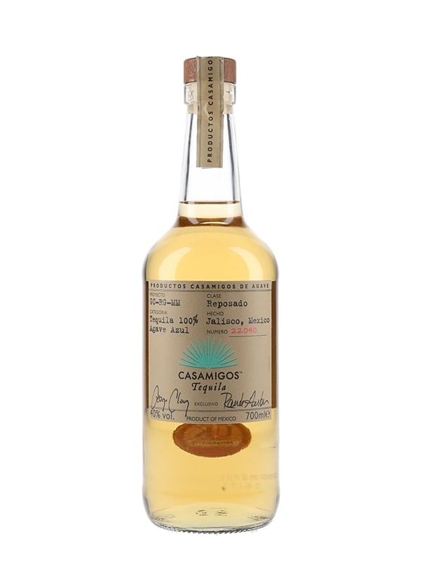 A bottle of Casamigos Reposado tequila produced in Jalisco, Mexico, for Cellar Trends Limited. This was aged for seven months in reconditioned American white oak whiskey casks.