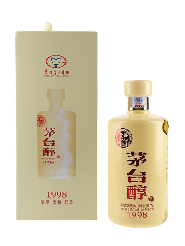 A 50cl bottle of Kweichow Moutai Chun 1998 in a presentation box.