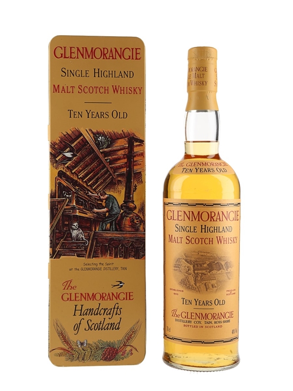 A bottle of Glenmorangie 10 Year Old Single Highland Malt Scotch Whisky. We estimate this was bottled in the 1990s.