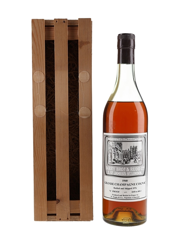 A 68cl bottle of Berry Brothers & Rudd Grande Champagne Cognac 1940. This was produced and bottled in France by Frapin & Co in 1976.